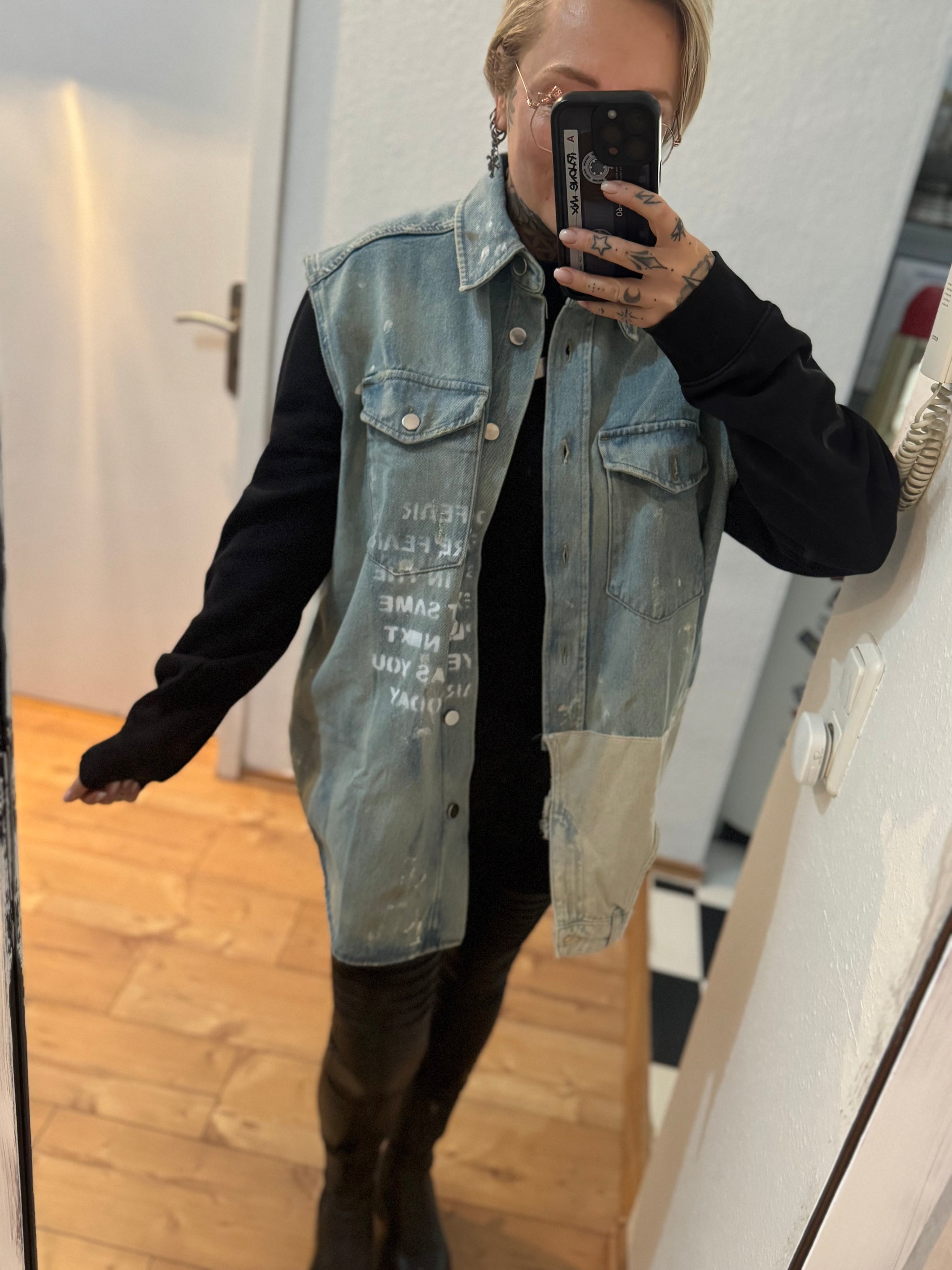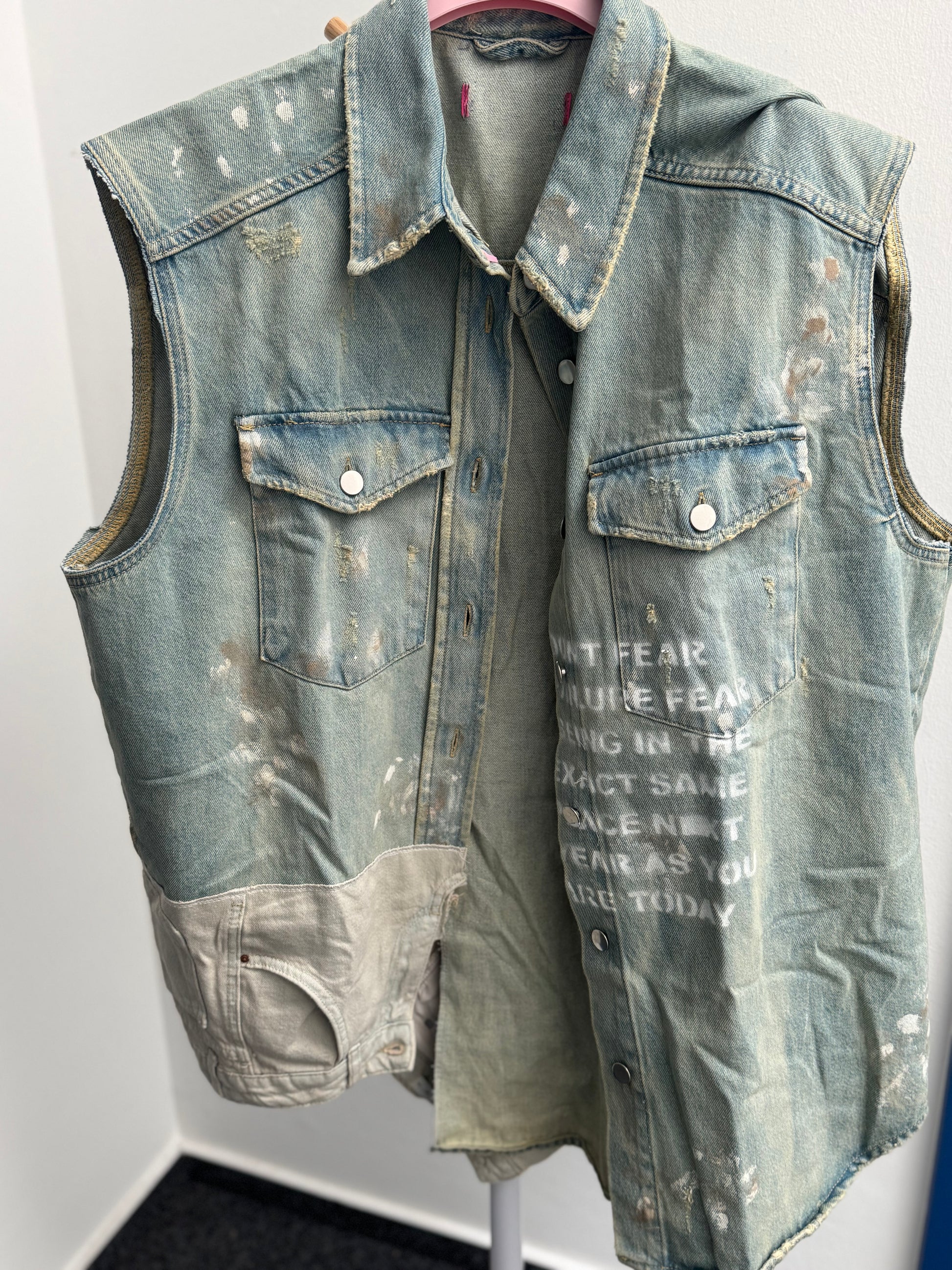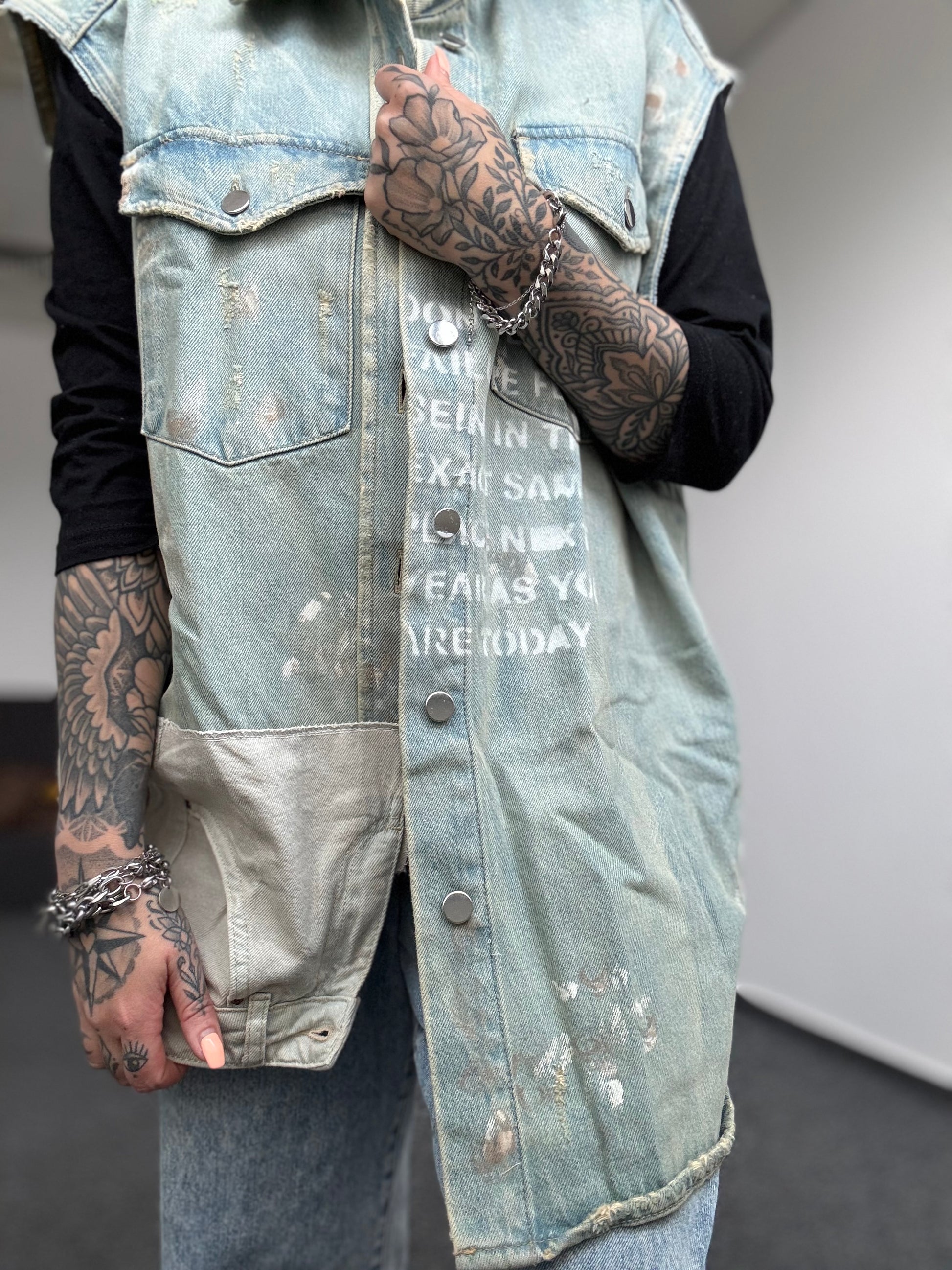 Jede einzelne Weste ist ein Unikat, da Waschung, Bemalungen und Details immer leicht variieren –> genau das macht sie so besonders.