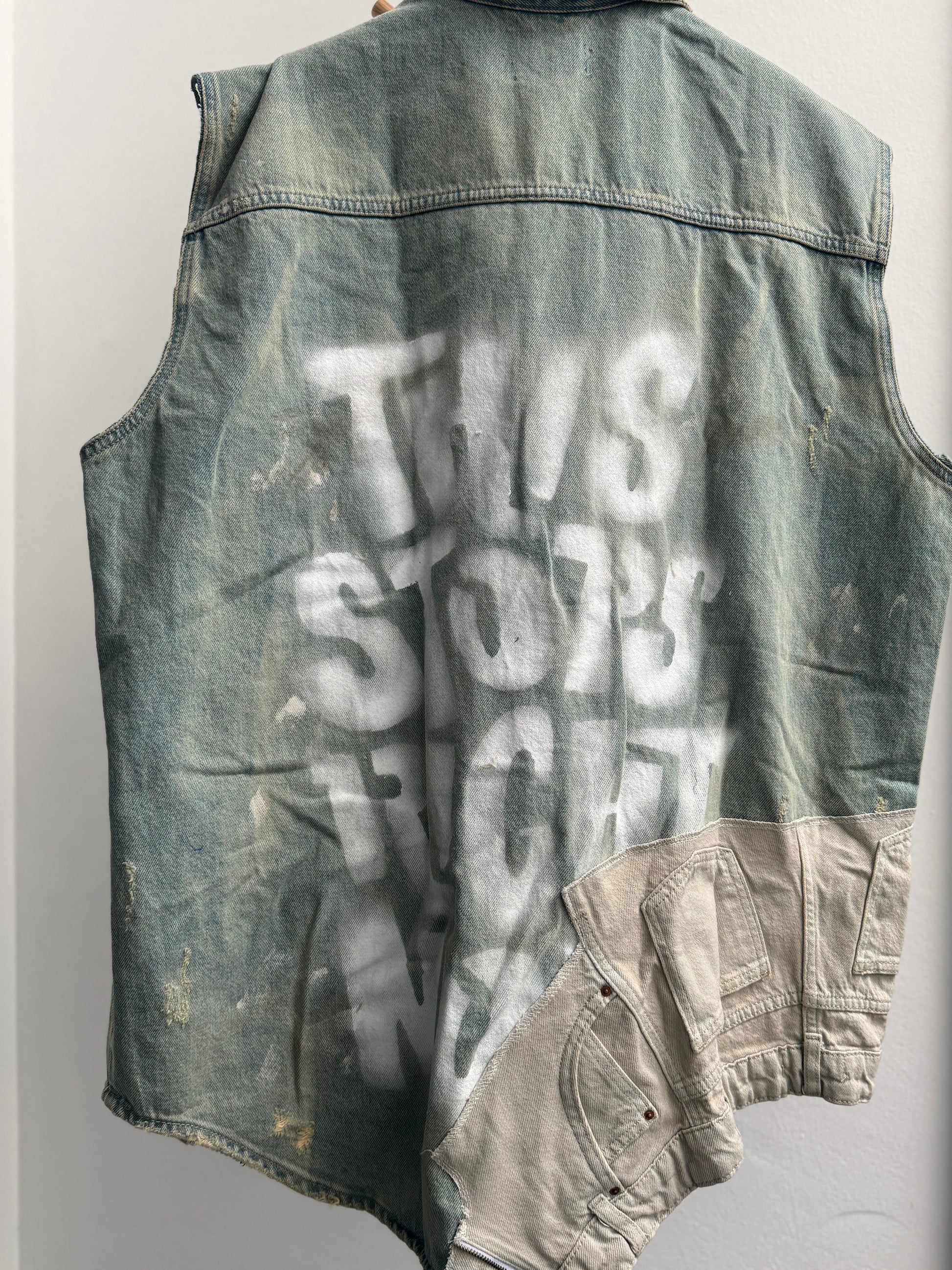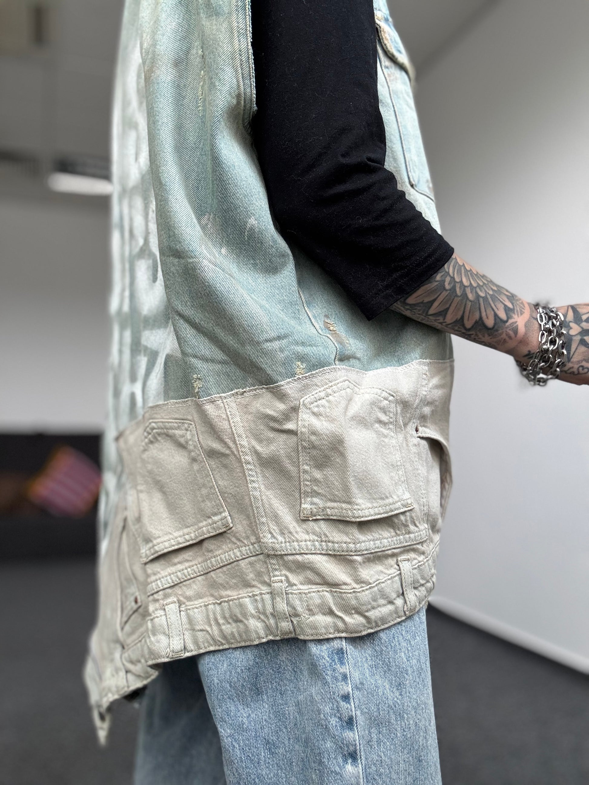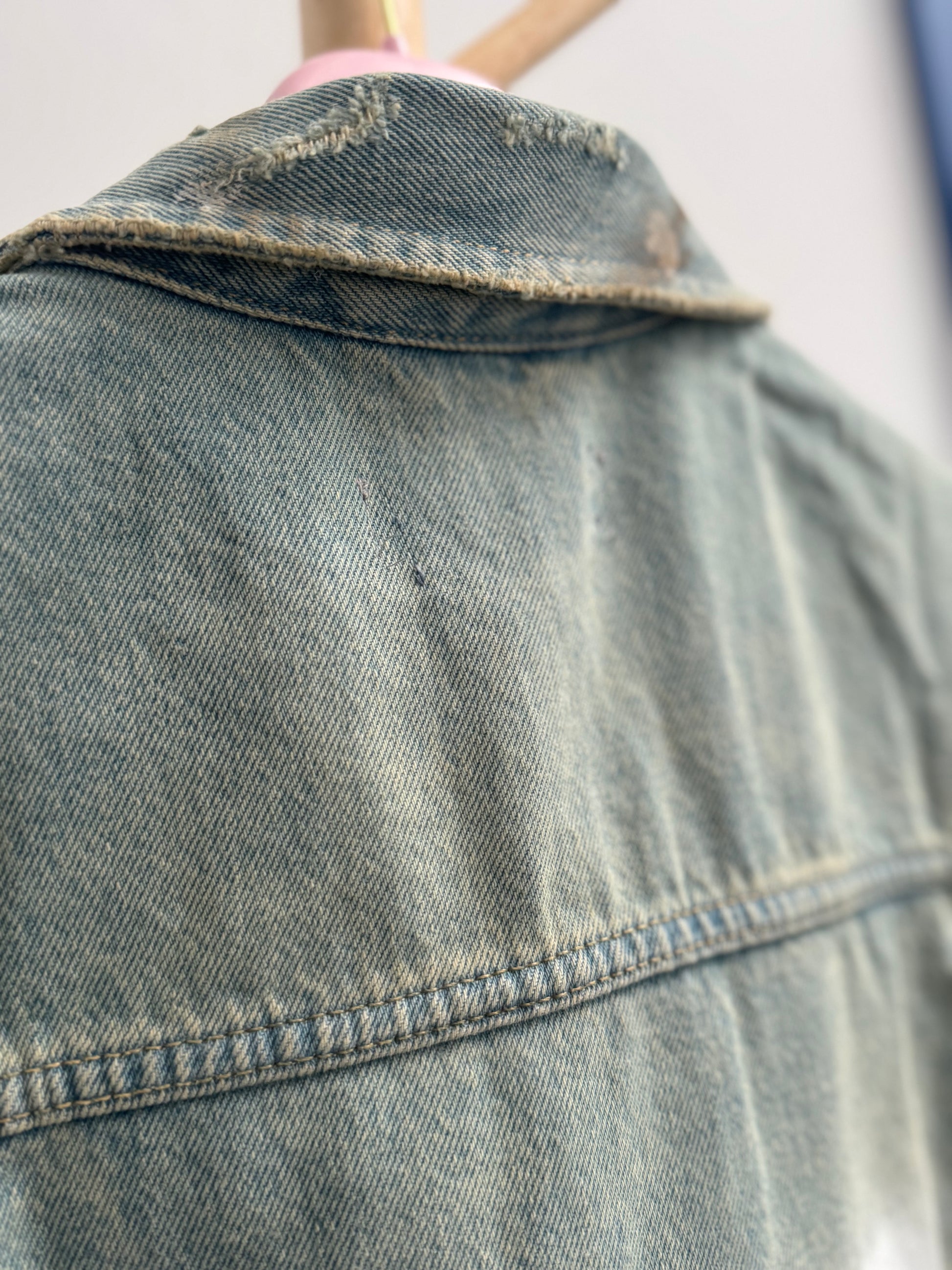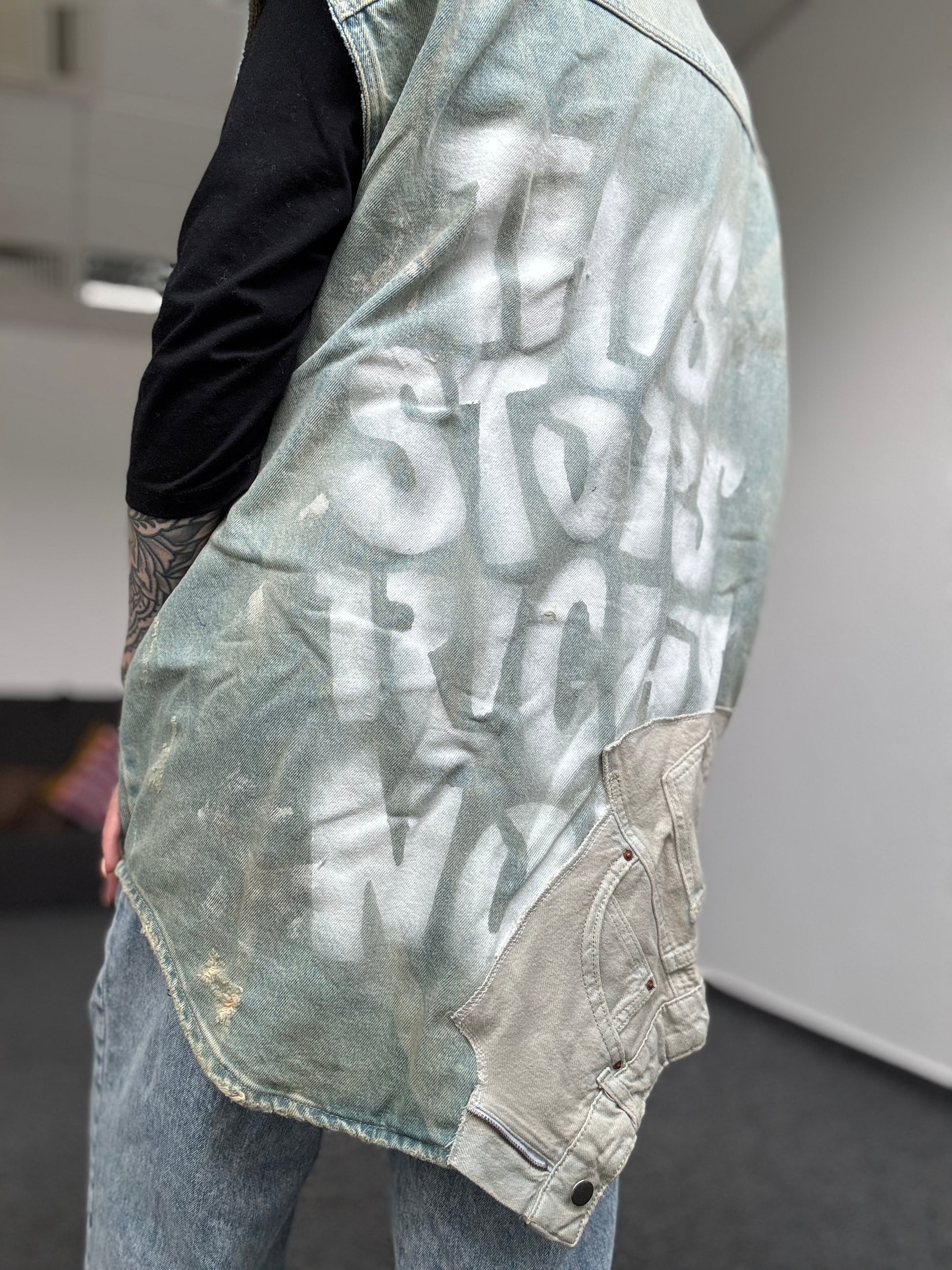Jede einzelne Weste ist ein Unikat, da Waschung, Bemalungen und Details immer leicht variieren –> genau das macht sie so besonders.