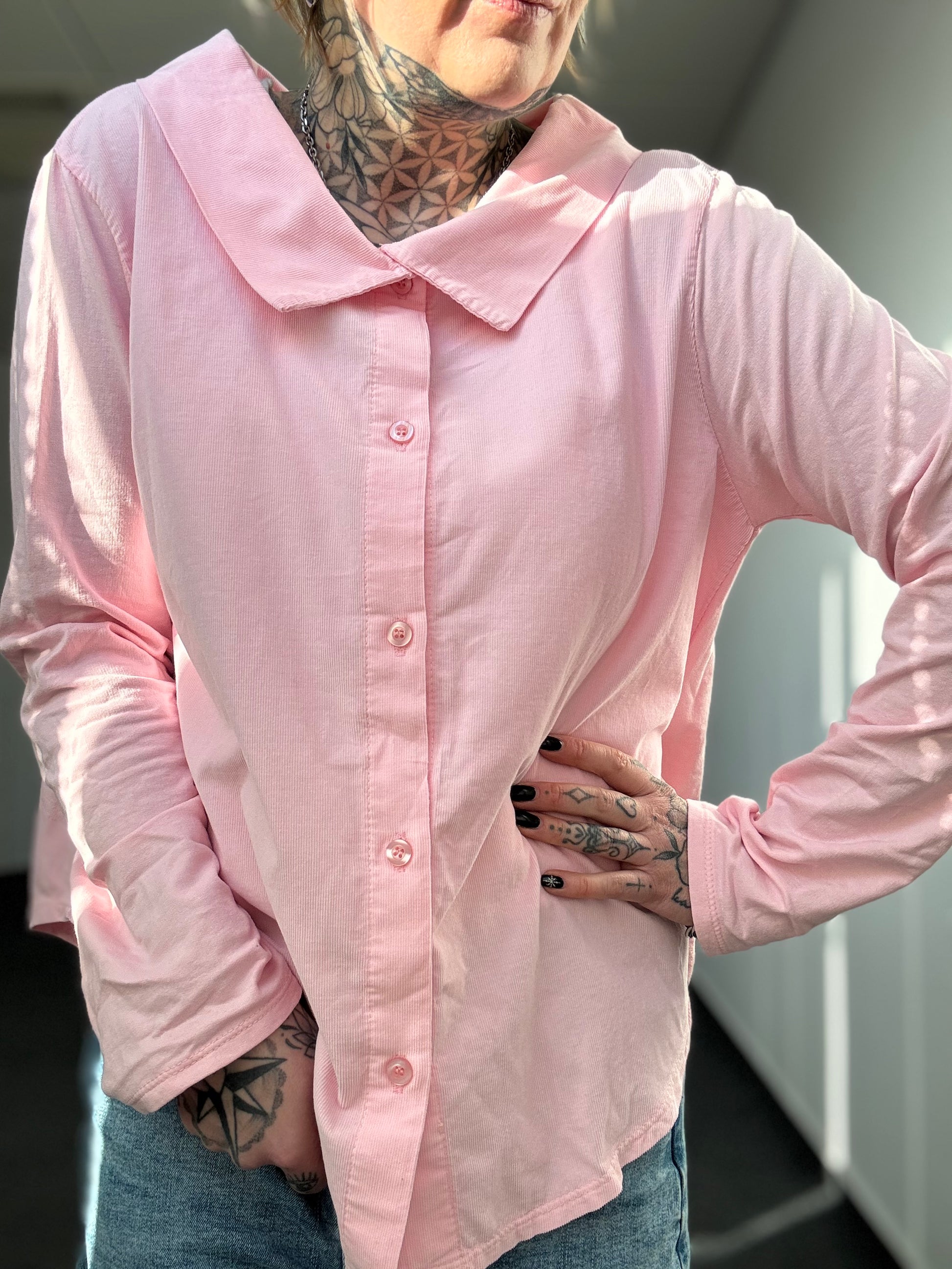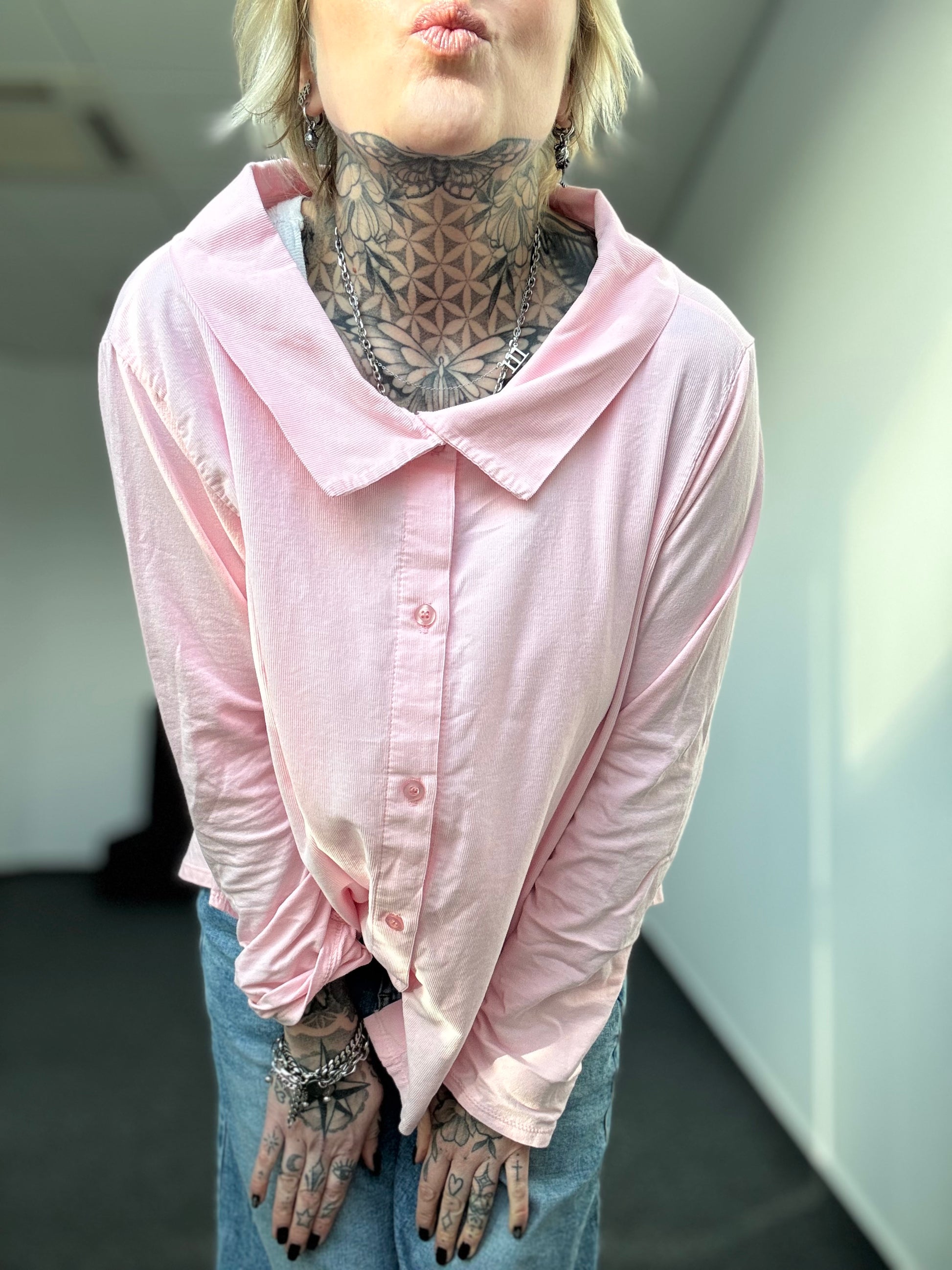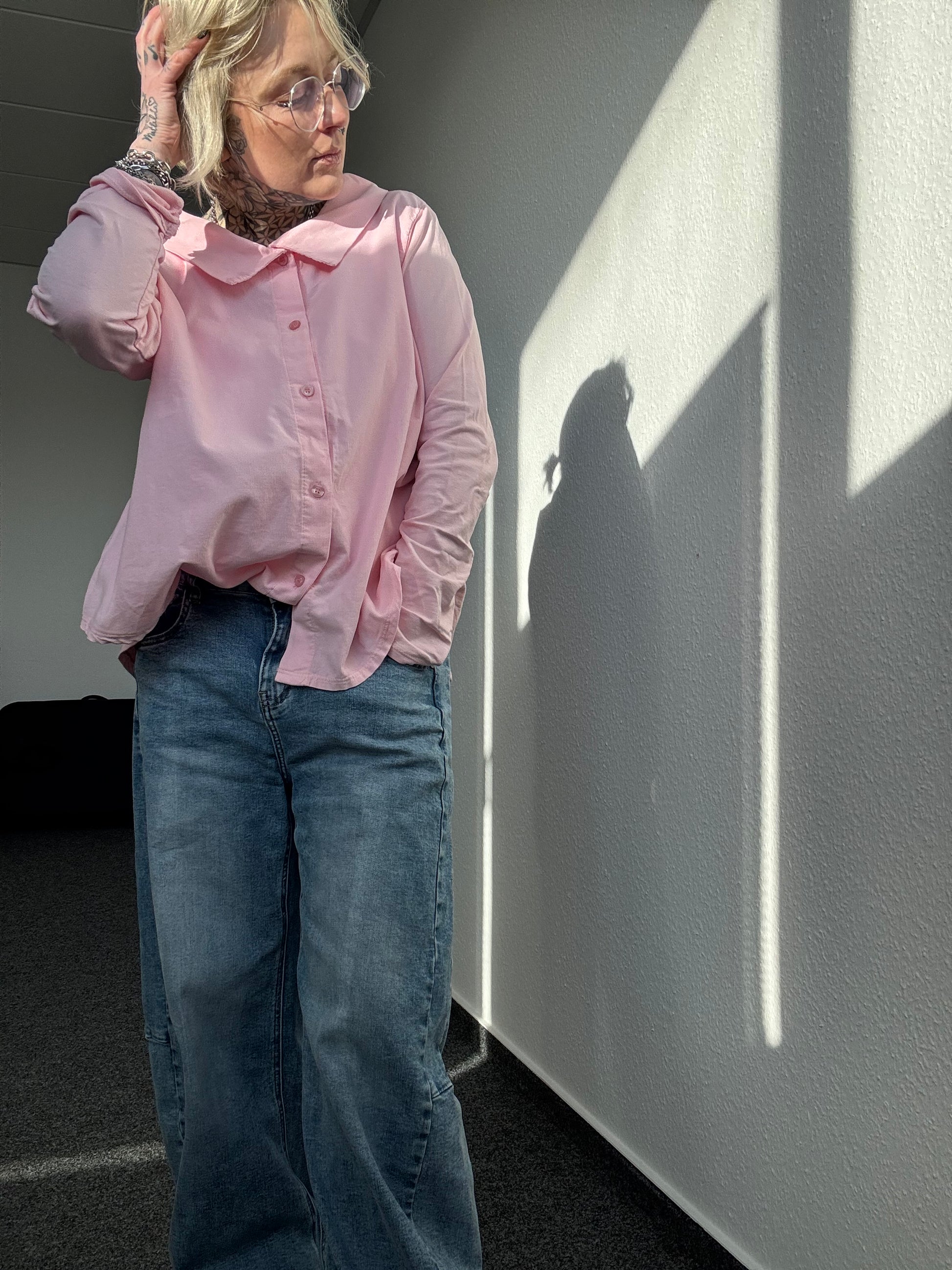 Das Coole an Thea: Offen getragen wirkt sie entspannt und casual, geschlossen eher clean und ruhig. Der Kragen ist vorne wie hinten vorhanden und gibt der Bluse diesen speziellen Look, den man nicht überall sieht.