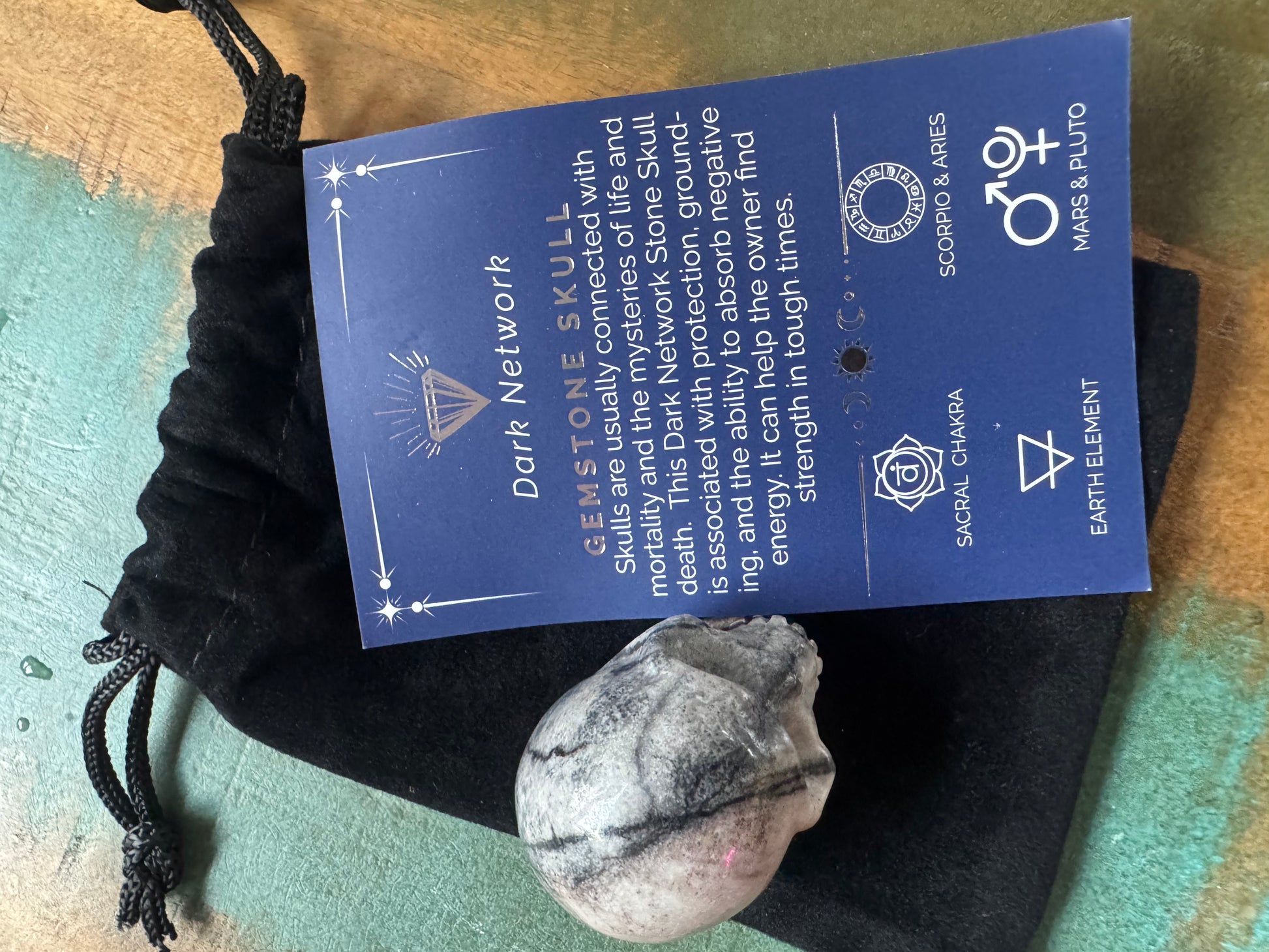 Der Dark Network Skull ist ein kraftvoller Begleiter in herausfordernden Zeiten. Schädel stehen für die Geheimnisse von Leben und Tod und dieser Schädel trägt die Energie von Schutz, Erdung und innerer Stärke in sich. Er unterstützt dich dabei, negative Energien aufzunehmen und in Klarheit und Stabilität zu verwandeln.