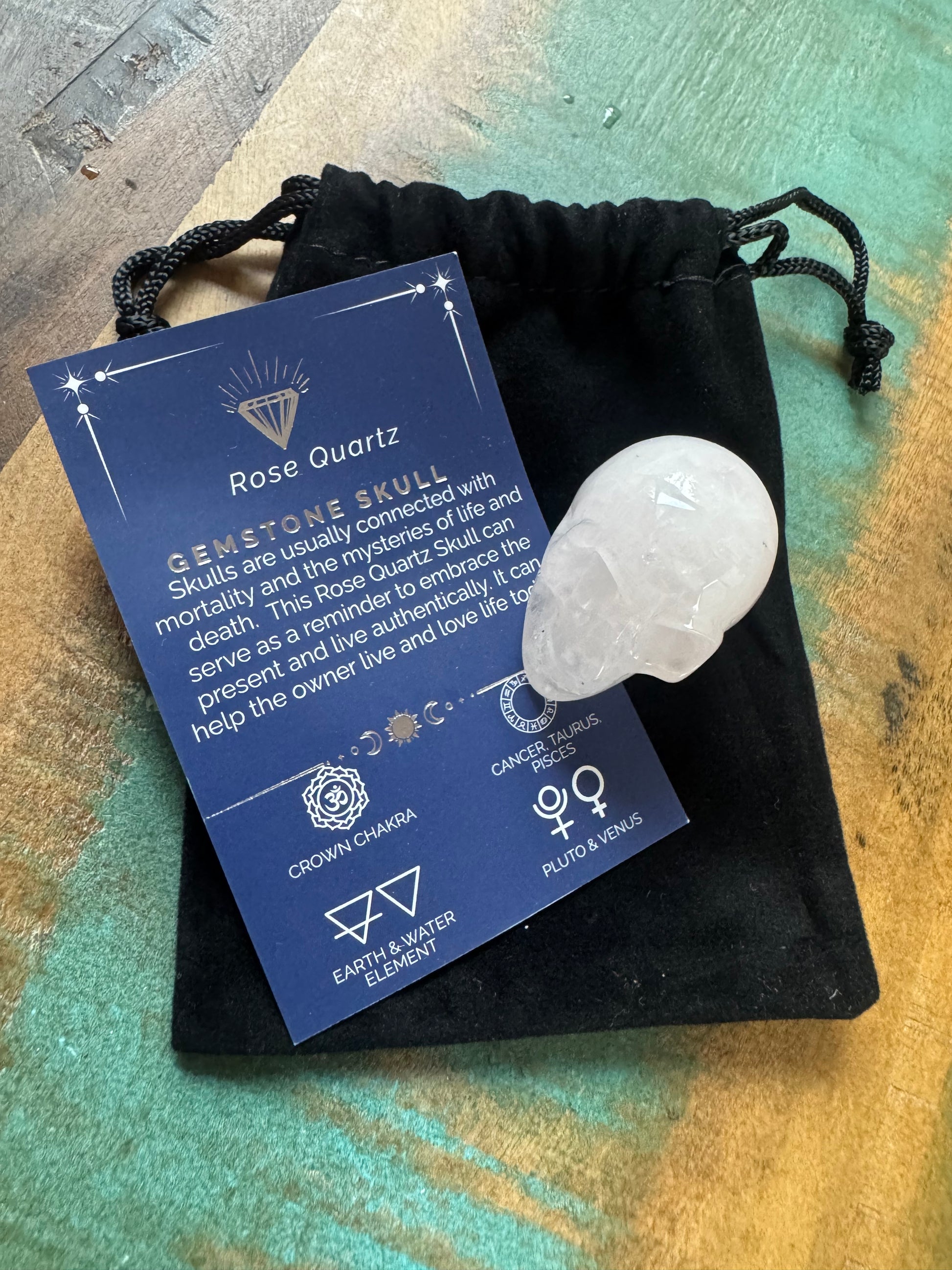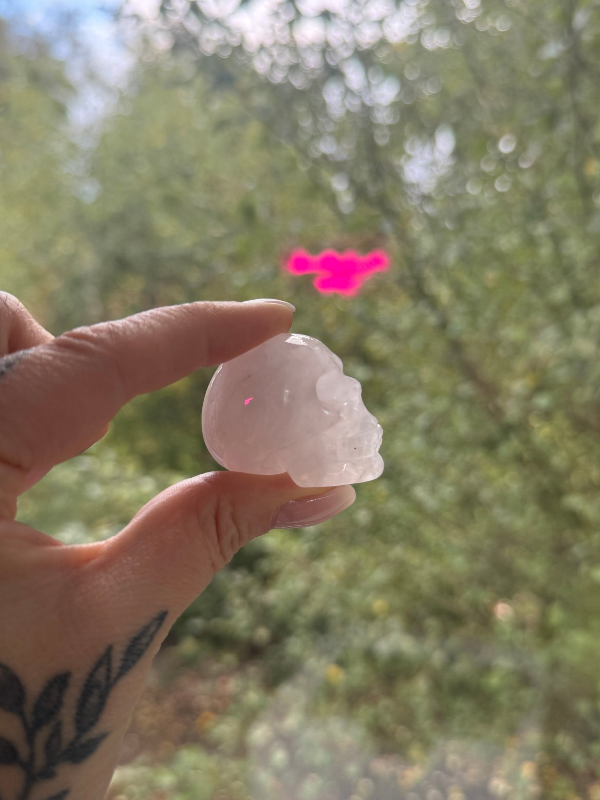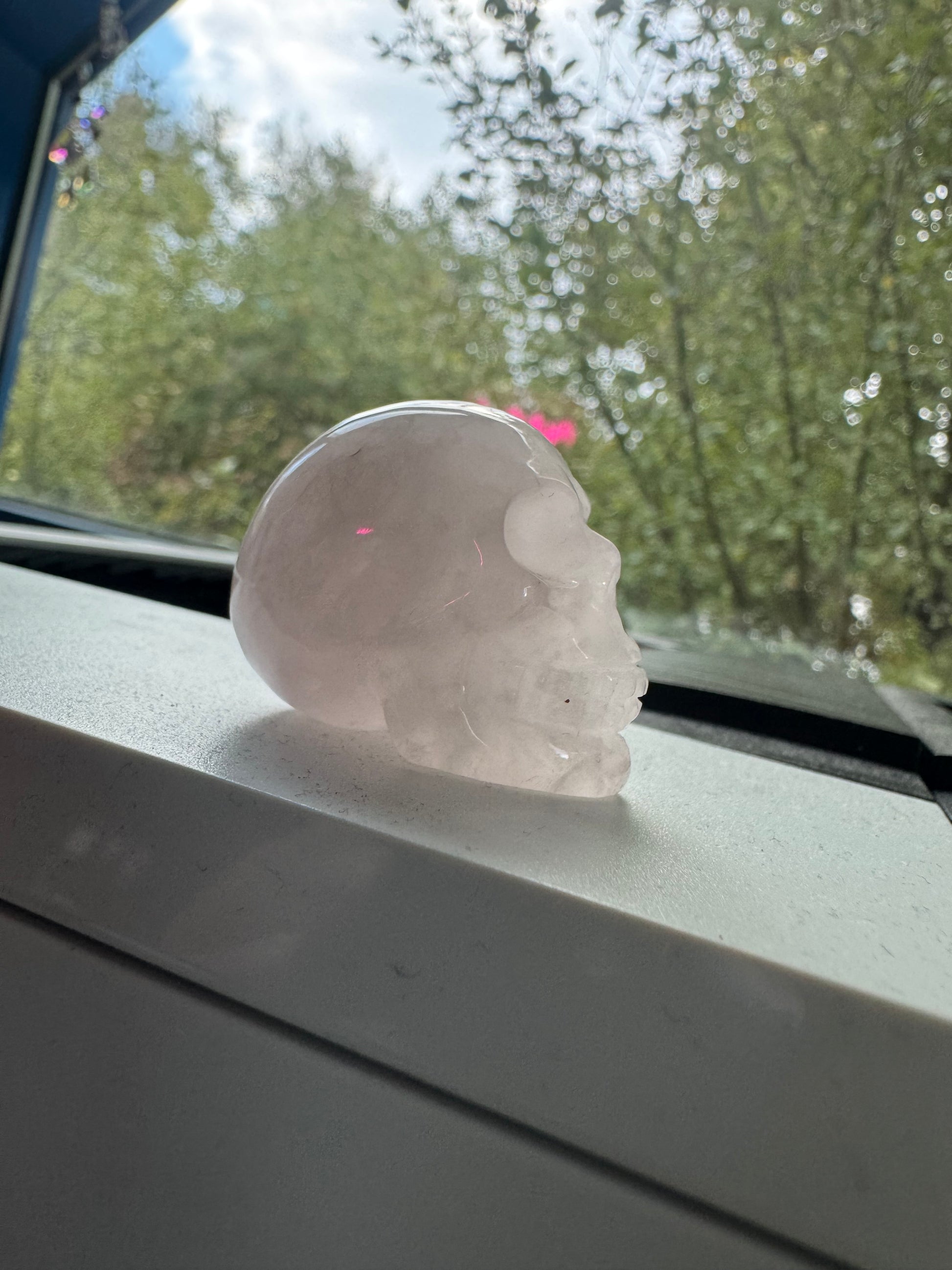 Rosenquarz Edelstein-Schädel – Liebe & Authentizität 💎💀🌹