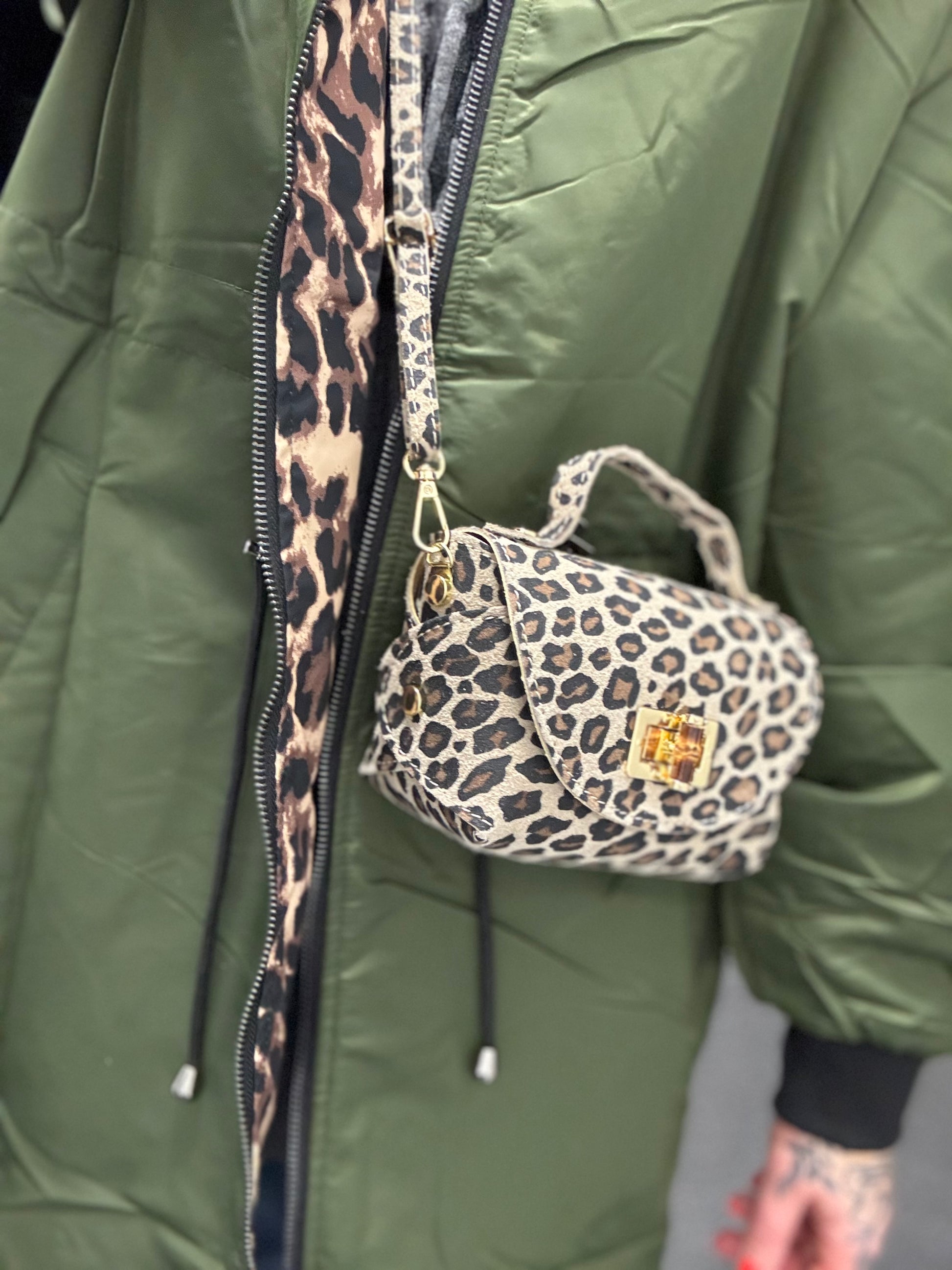 Der Taschengurt ist verstellbar und kann "crossbody" getragen werden. Gesamtlänge Gurt 122cm.