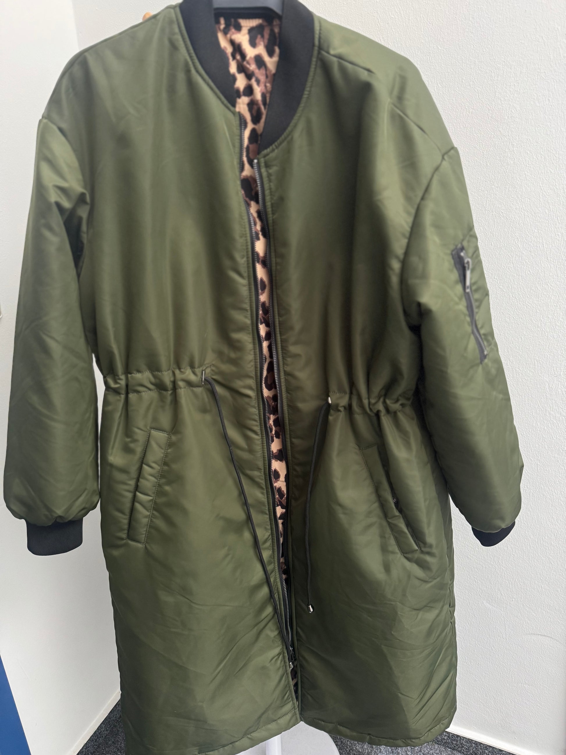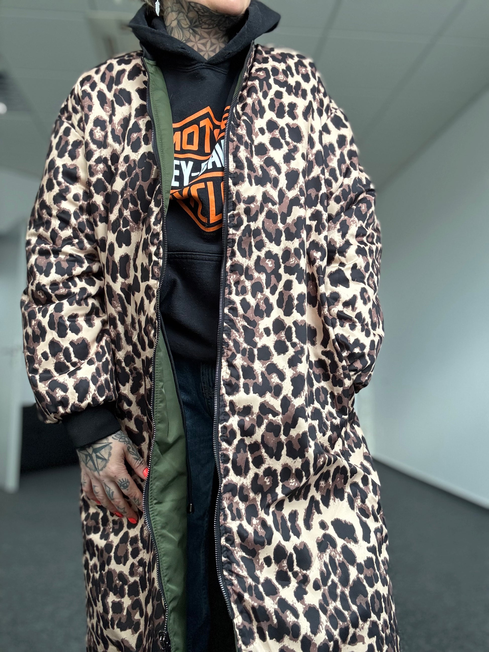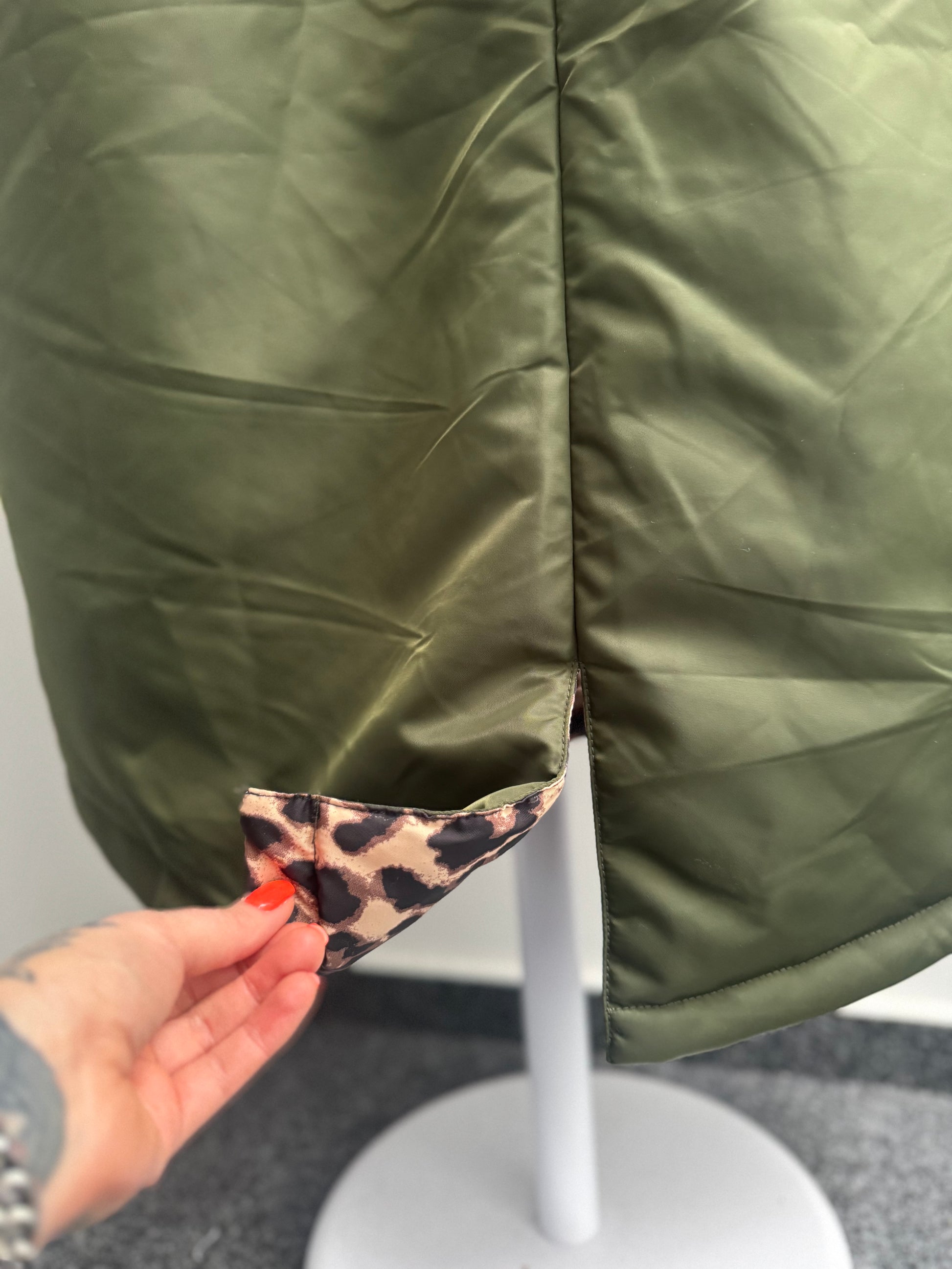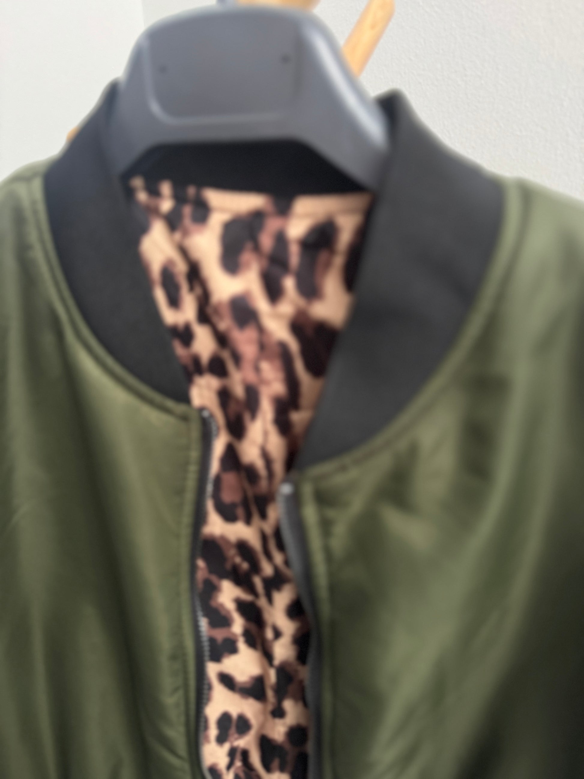 -Farbe khaki und kann auf Leomuster gewendet getragen werden