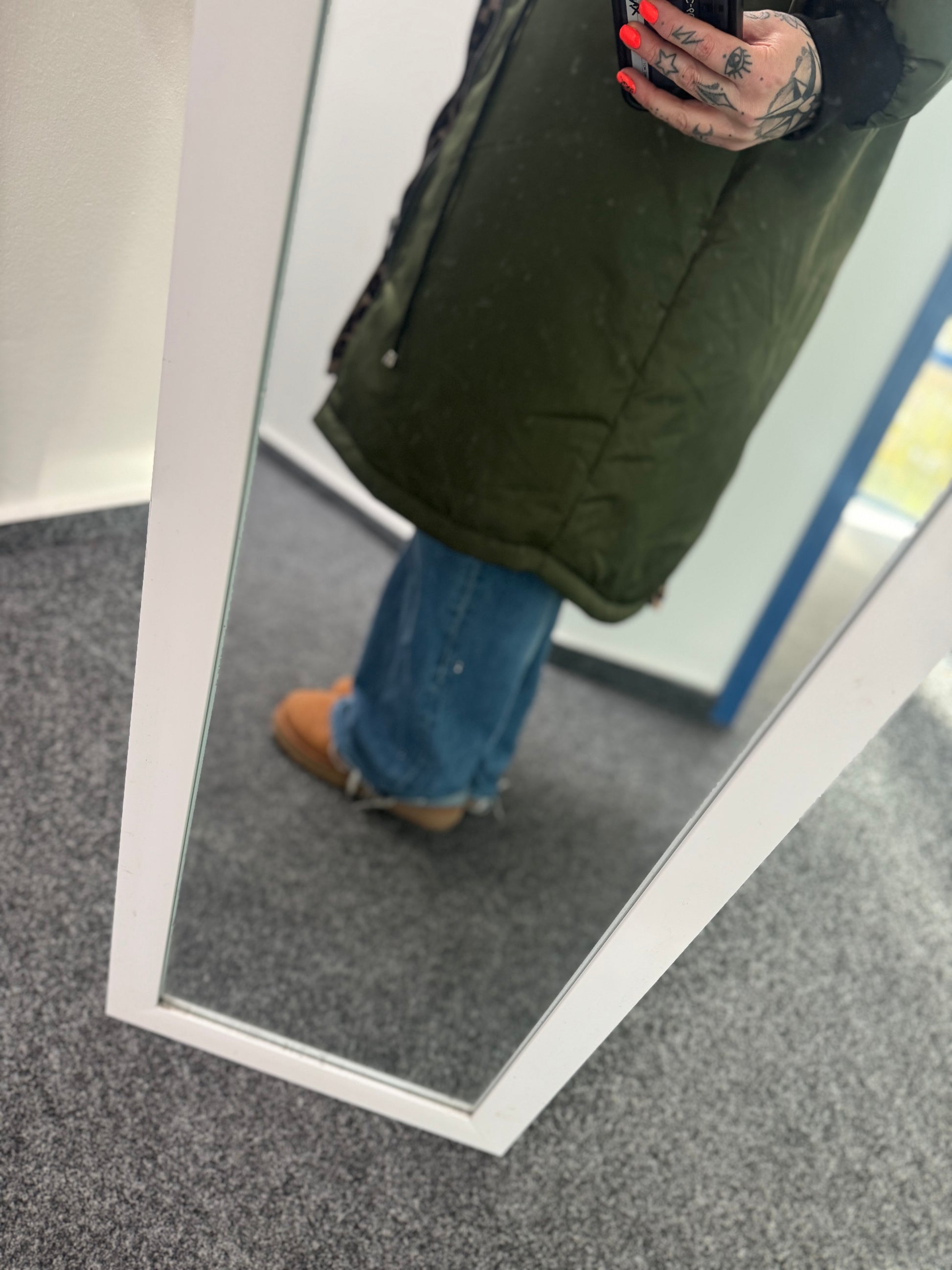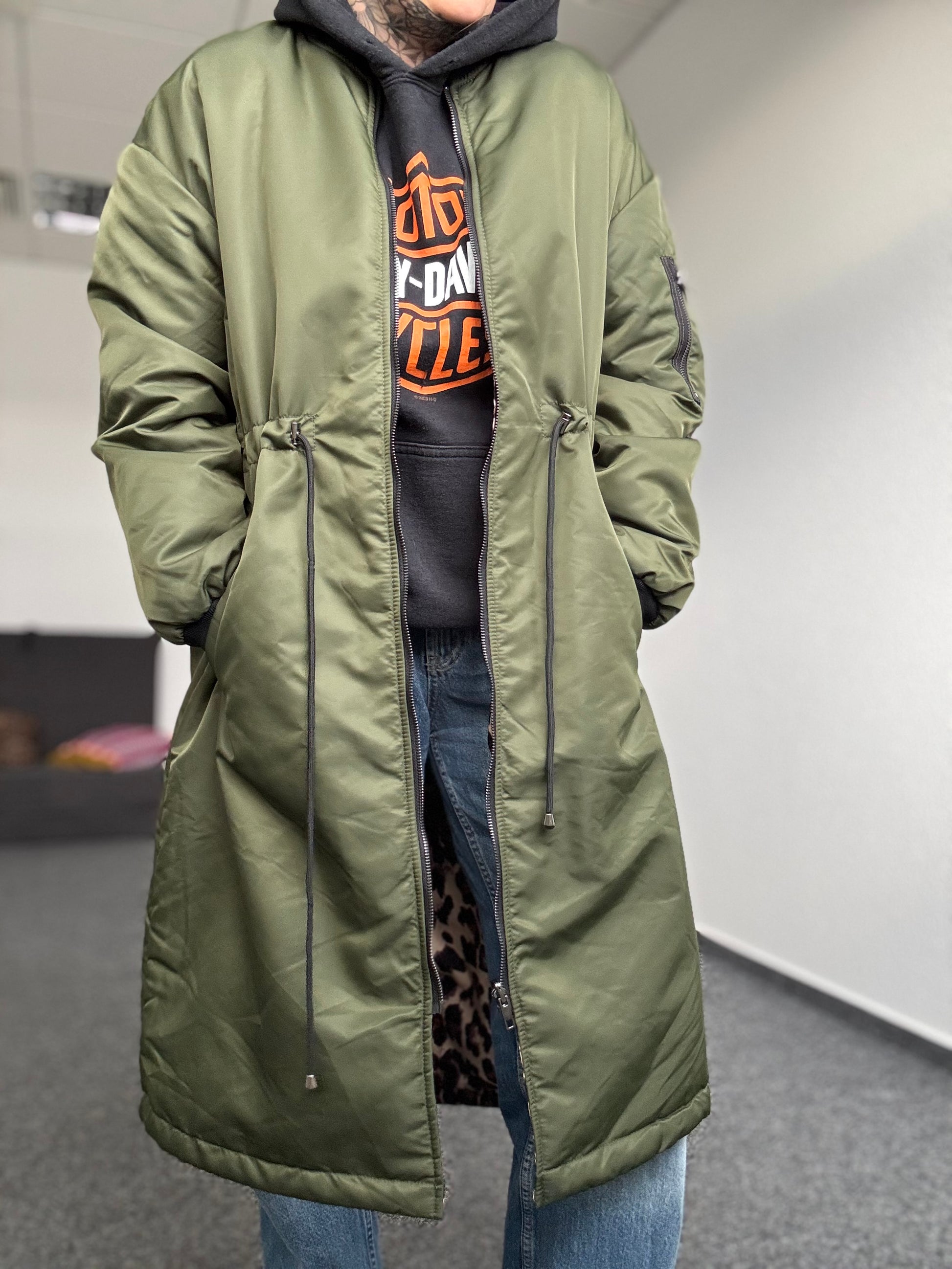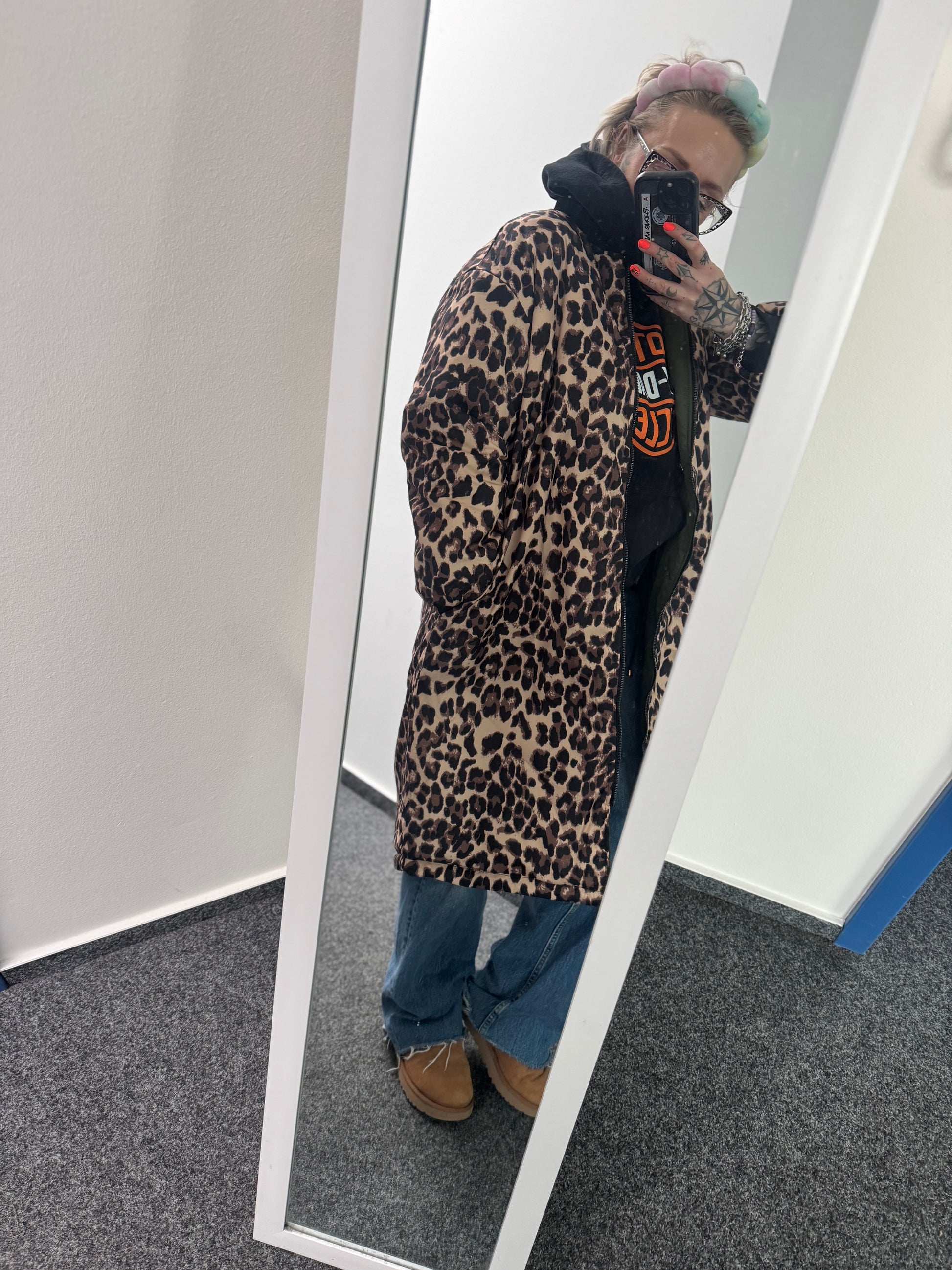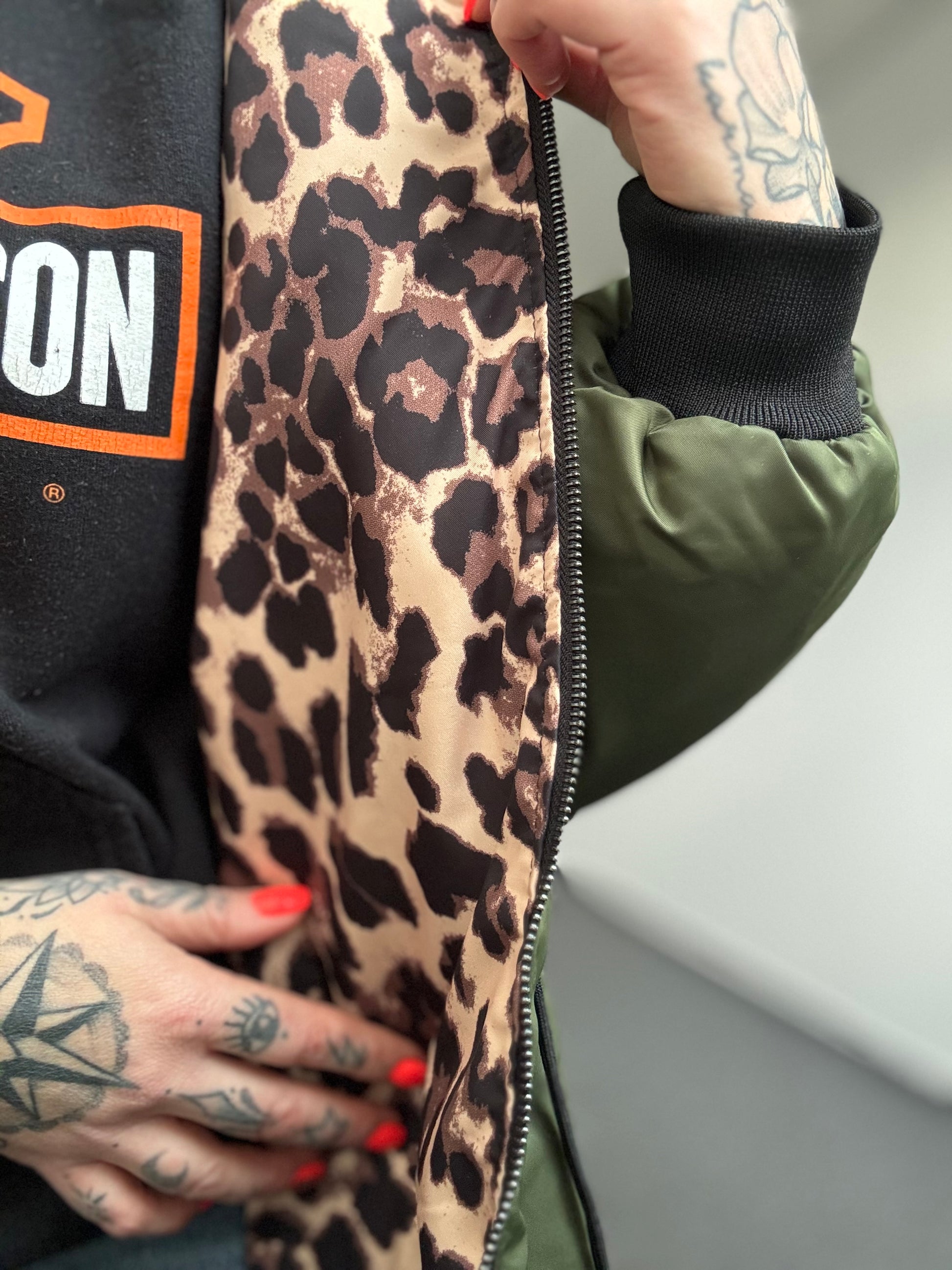 -Farbe khaki und kann auf Leomuster gewendet getragen werden