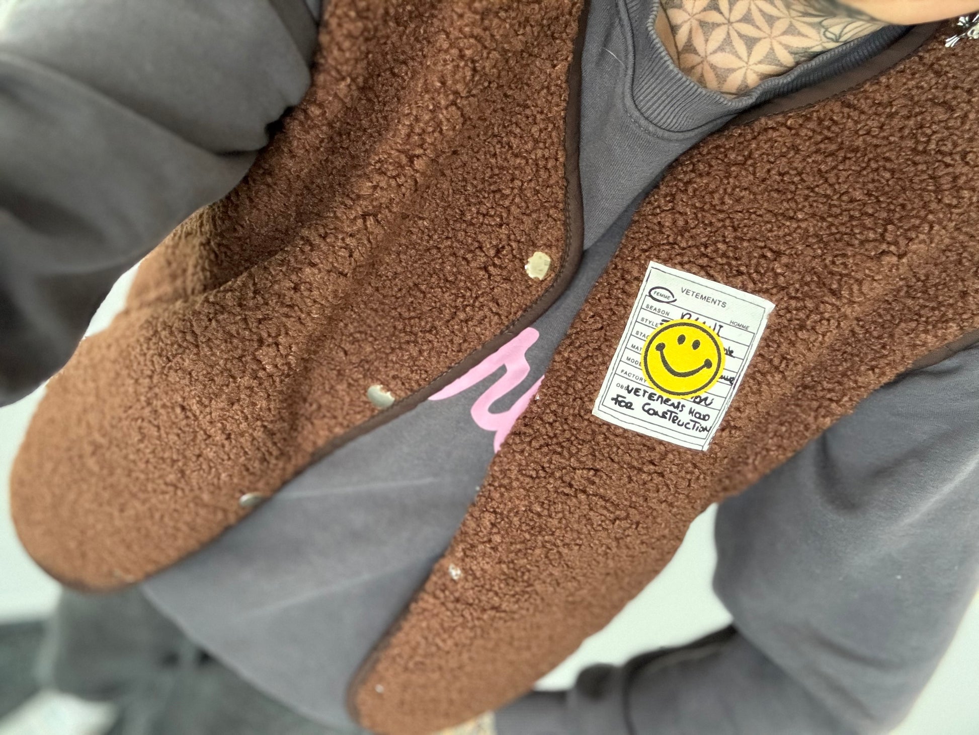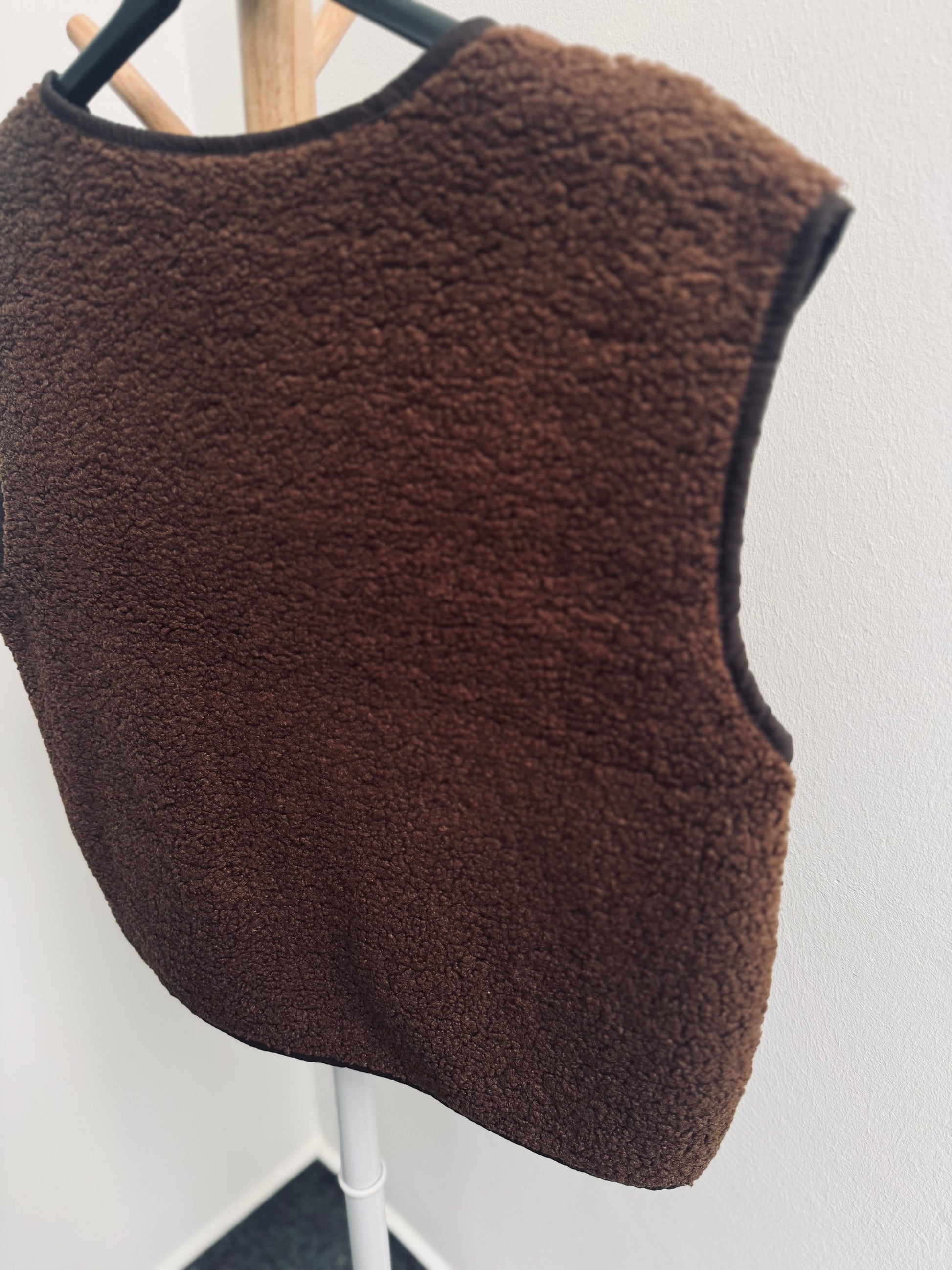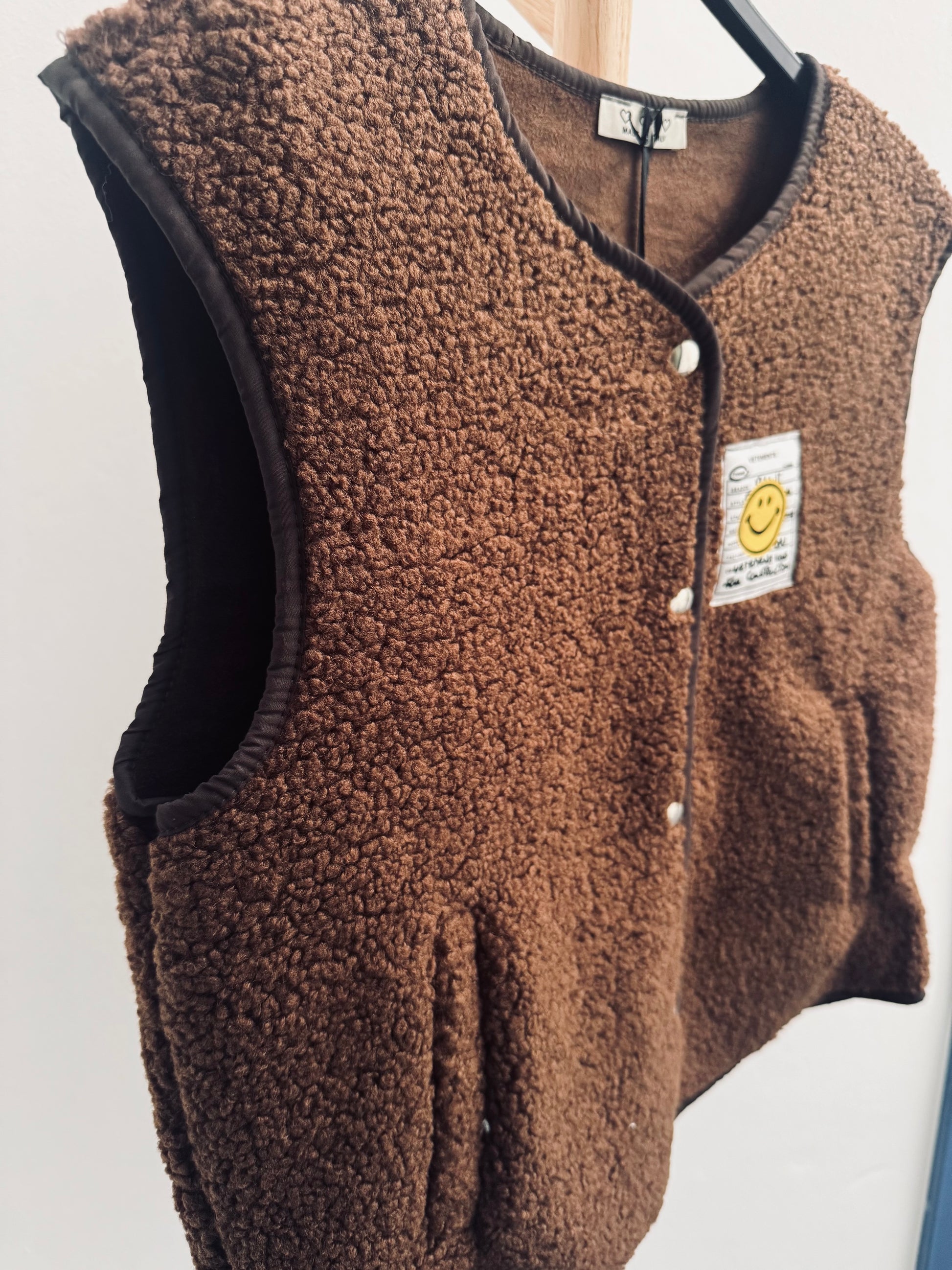 Weste aus Teddystoff mit Druckknöpfen und Taschen.