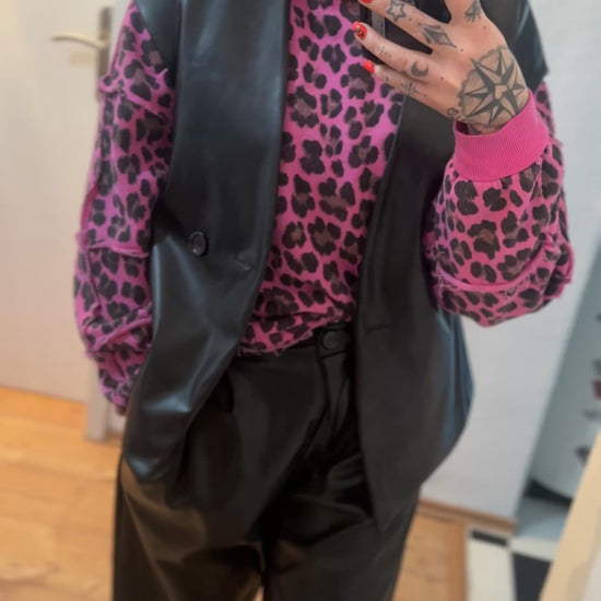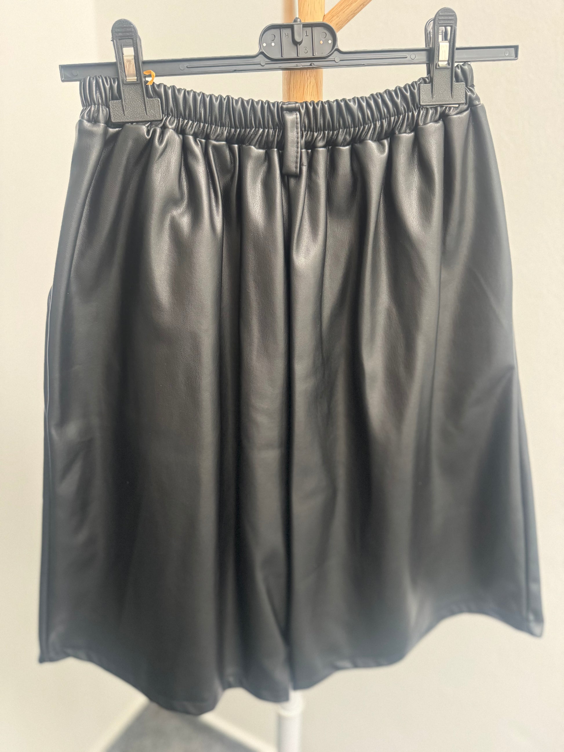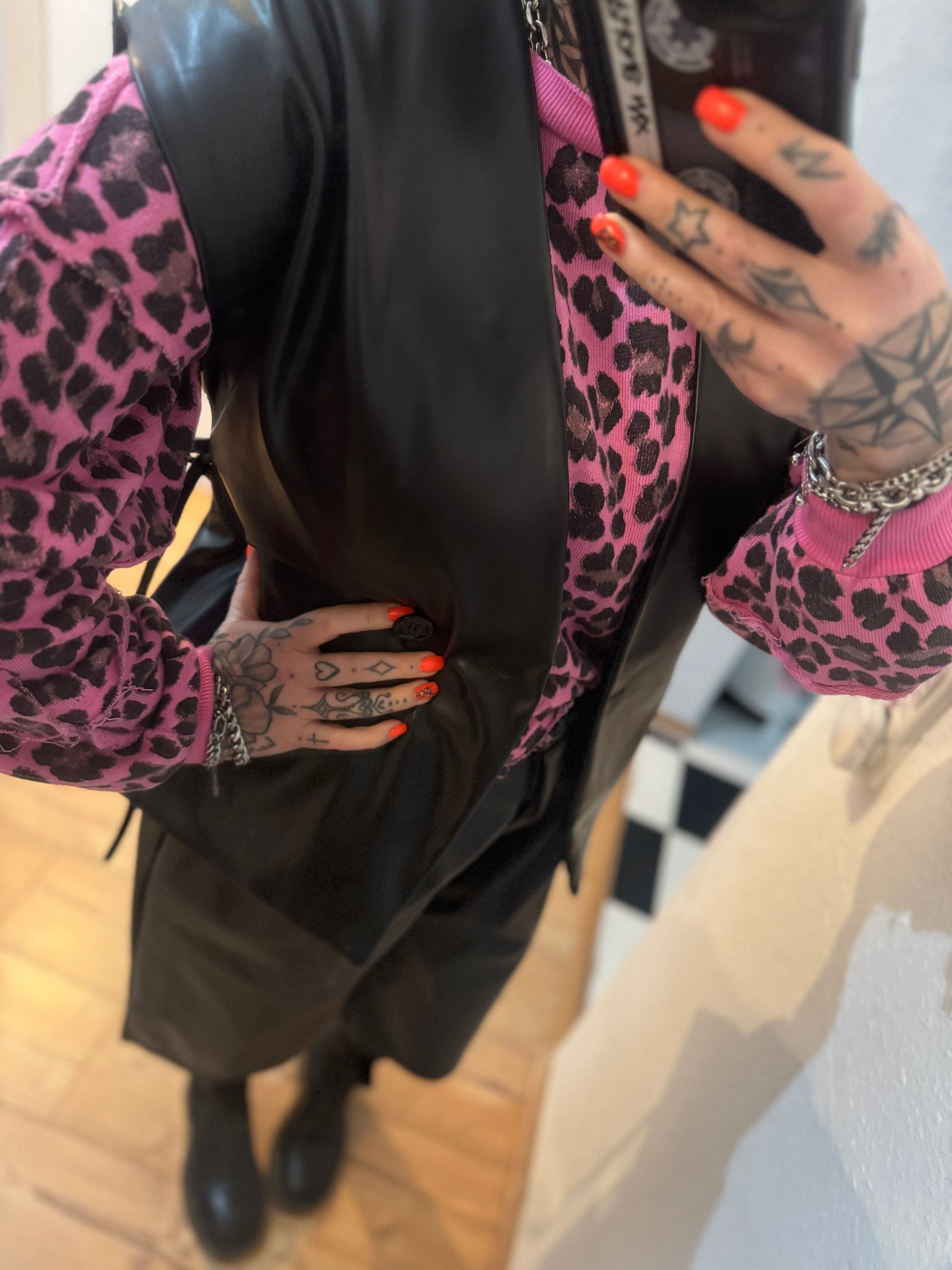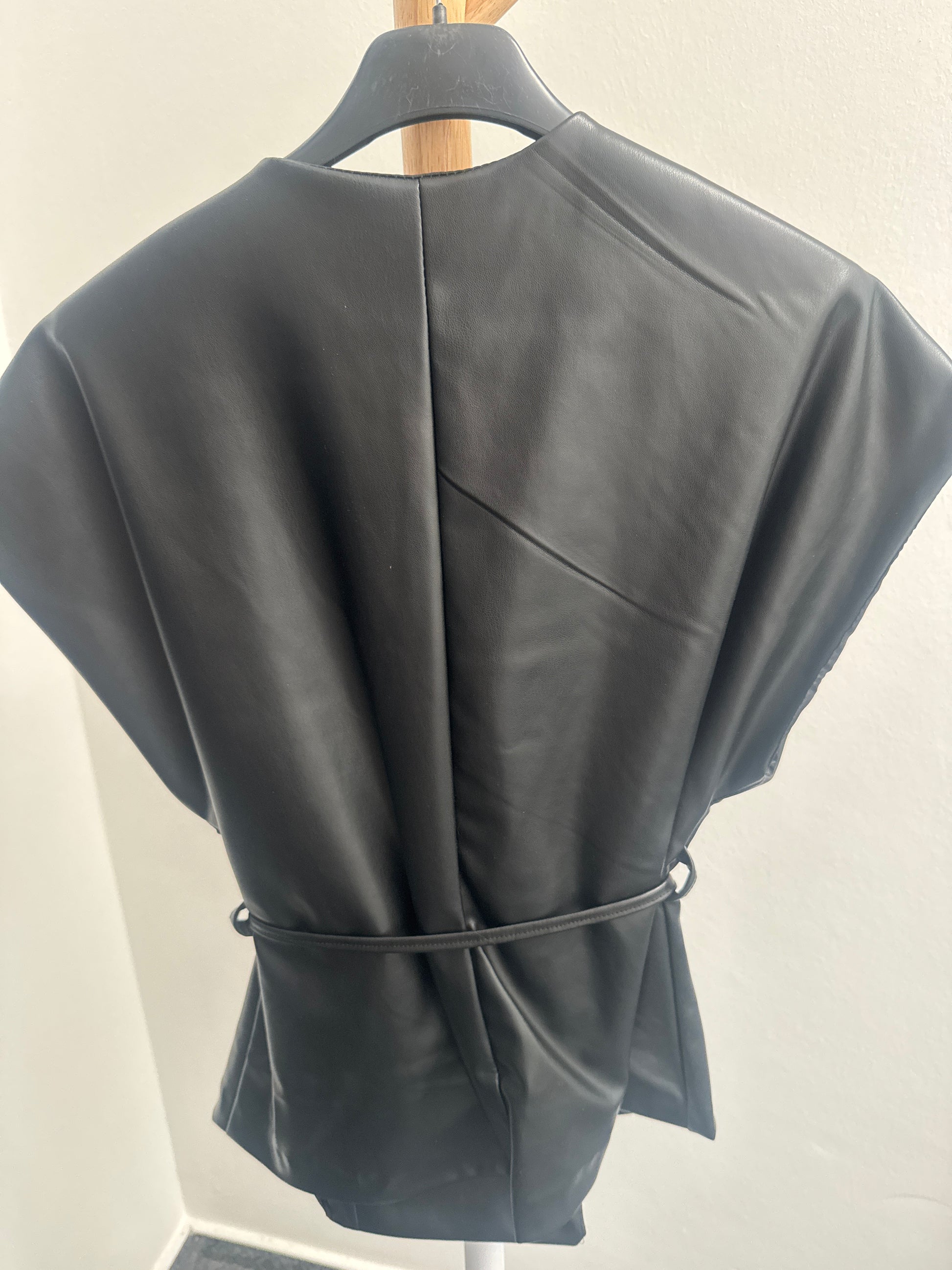 Dieses Set schreit nach Selbstbewusstsein. Der Girlboss Zweiteiler besteht aus einer lässig geschnittenen Bermuda aus veganem Leder und einer passenden Weste, die deinen Look sofort edgy und modern wirken lässt.